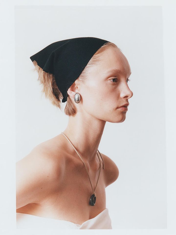 top, headdress, earrings and necklace stylist’s own
