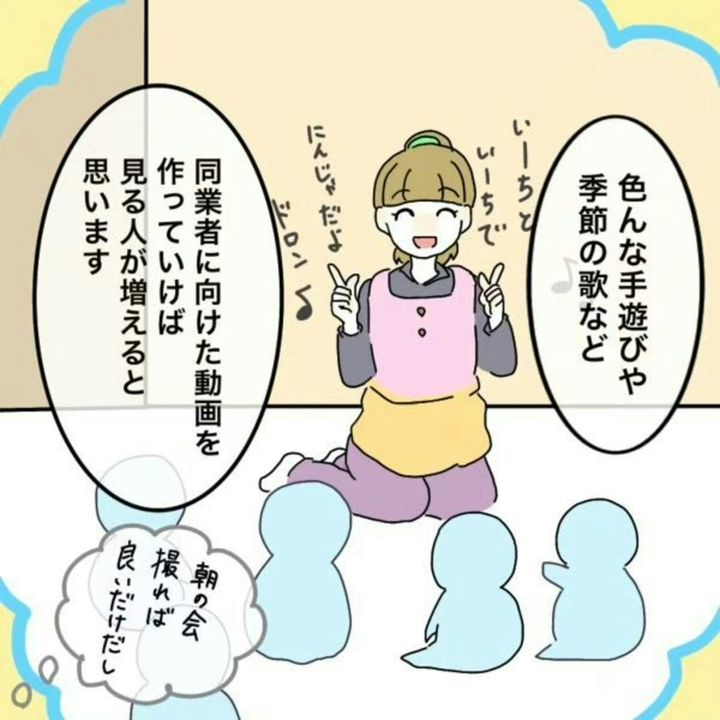 そんなある日、園の紹介動画をSNSにアップしようと社長が言い出し、SNSを使った広報をすることに。動画のネタ出しをする広報会議に参加させられたなしえは、そこでいくつか提案をするように言われるのですが…。