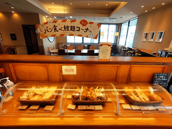 パン食べ放題コーナー。パンの種類は日によって変わるそうです。