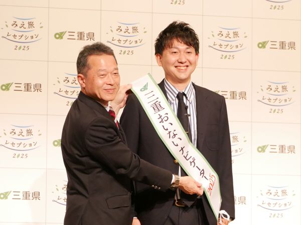 お笑いコンビ・バッテリィズの寺家さんが、三重県の観光PRを目的とする「三重おいないナビゲーター2025」に就任。都内で開催された「みえ旅レセプション2025」で就任式が行われました。