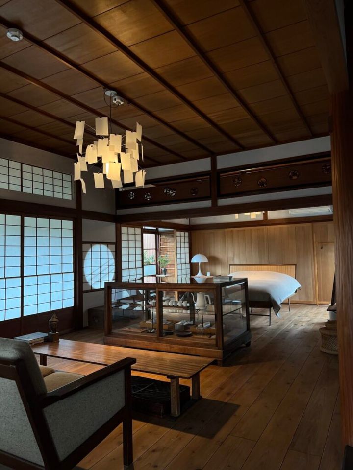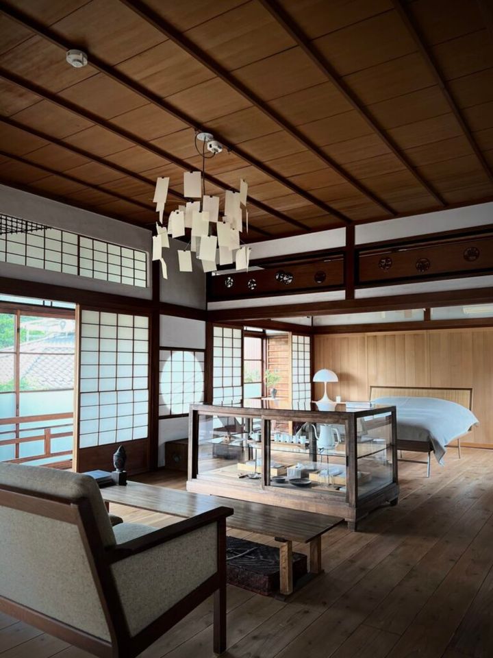 こちらは、ドイツの照明デザイナー、インゴ・マウラーによる「ツェッツル」。二階の二間に、それぞれ一灯ずつ吊るしています。