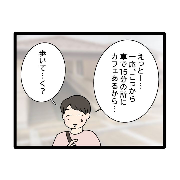 「こっから車で15分の所にカフェがあるから歩いて・・く?」本気!?
