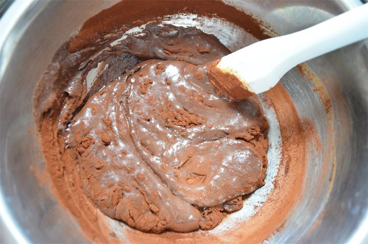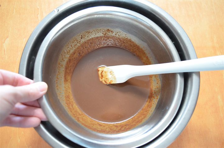 2.1に純ココアを加えて混ぜ、固まってきたら冷蔵庫で3時間冷やす。