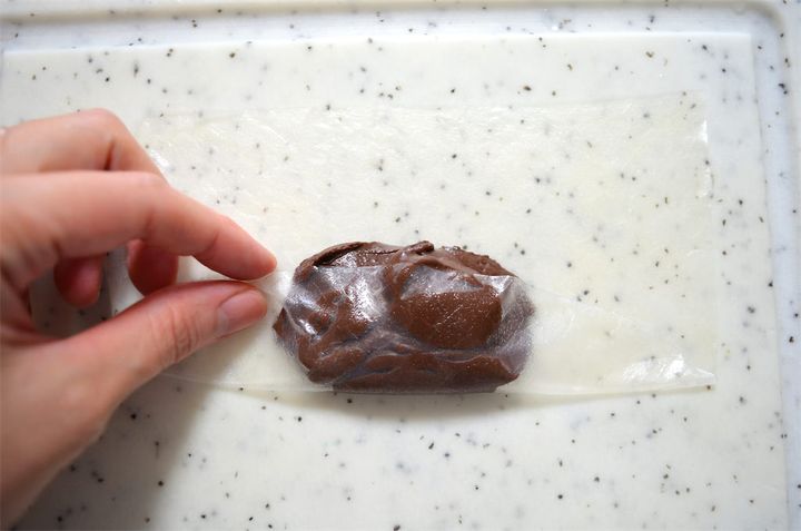 お次は、ライスペーパーに包んだ水チョコをいただきます。