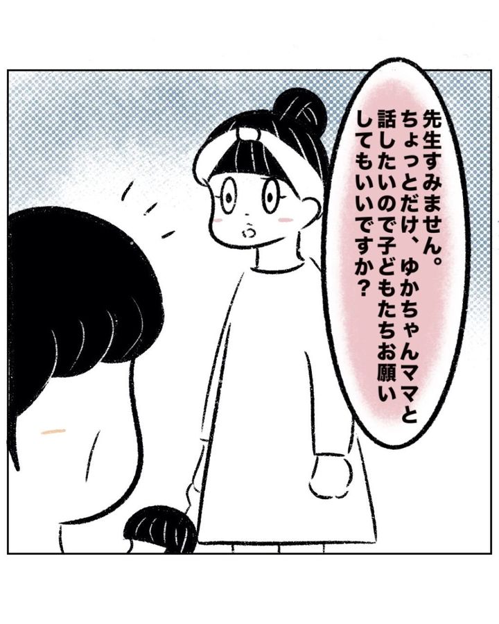 先生と子どもたちを見送ったまるさんは、ゆかちゃんママの方に振り返ると、