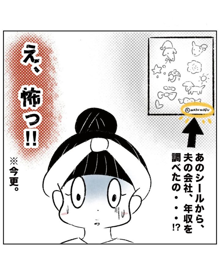 「あのシールから、夫の会社、年収を調べたの・・!?え、怖っ!!」と今更ながら恐怖が・・(汗)
