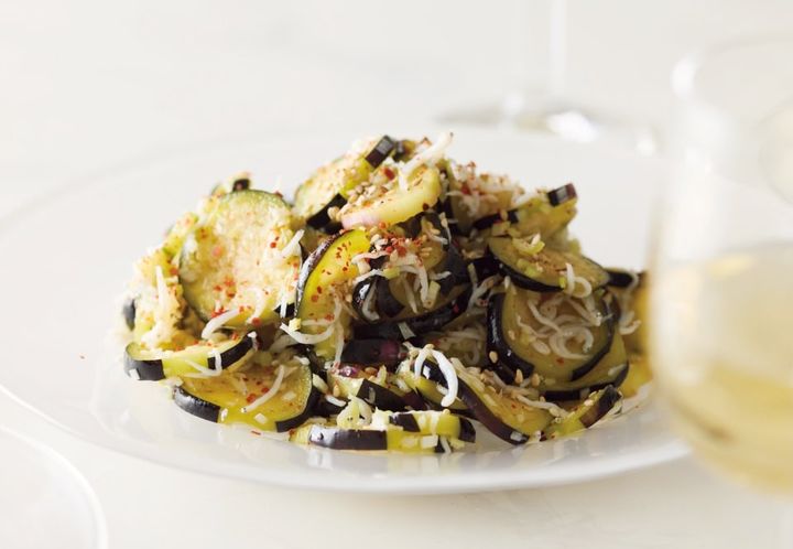 潔いレシピで素材の魅力を引き出す、家庭料理の名手・大庭英子先生に、夏野菜の代表・トマトとなすを主役にしたレシピを教えてもらいました! 簡単でおいしい、リピート間違いなしの逸品で、料理の幅を広げましょう。『なすとしらすの韓国和え』は、火を使わずサッと完成する、夏に嬉しいピリ辛おつまみ。ごま油の香りとしらすの旨みが染み込み、ヤミツキになる一品です。