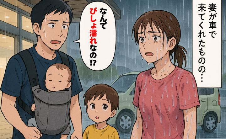 3. 子連れ外出の帰りに雨。妻に迎えを頼んだら「なんでびしょ濡れ!?車に乗って来たのに」衝撃の理由とは