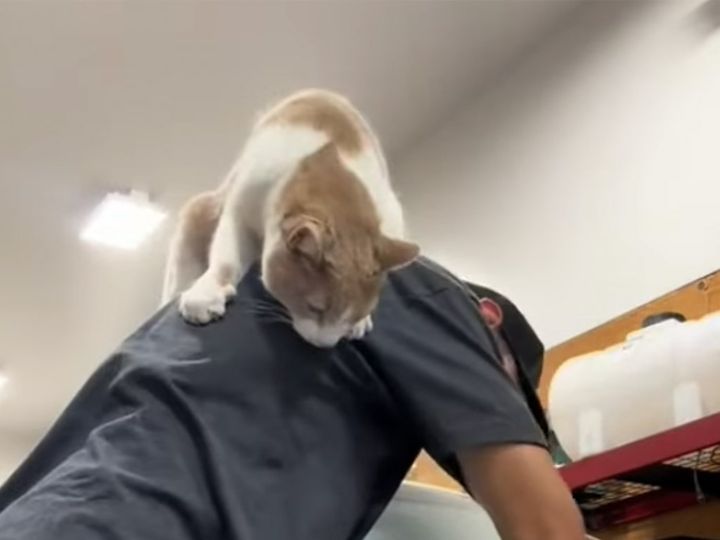 肩の上にひょいっと飛び乗り、