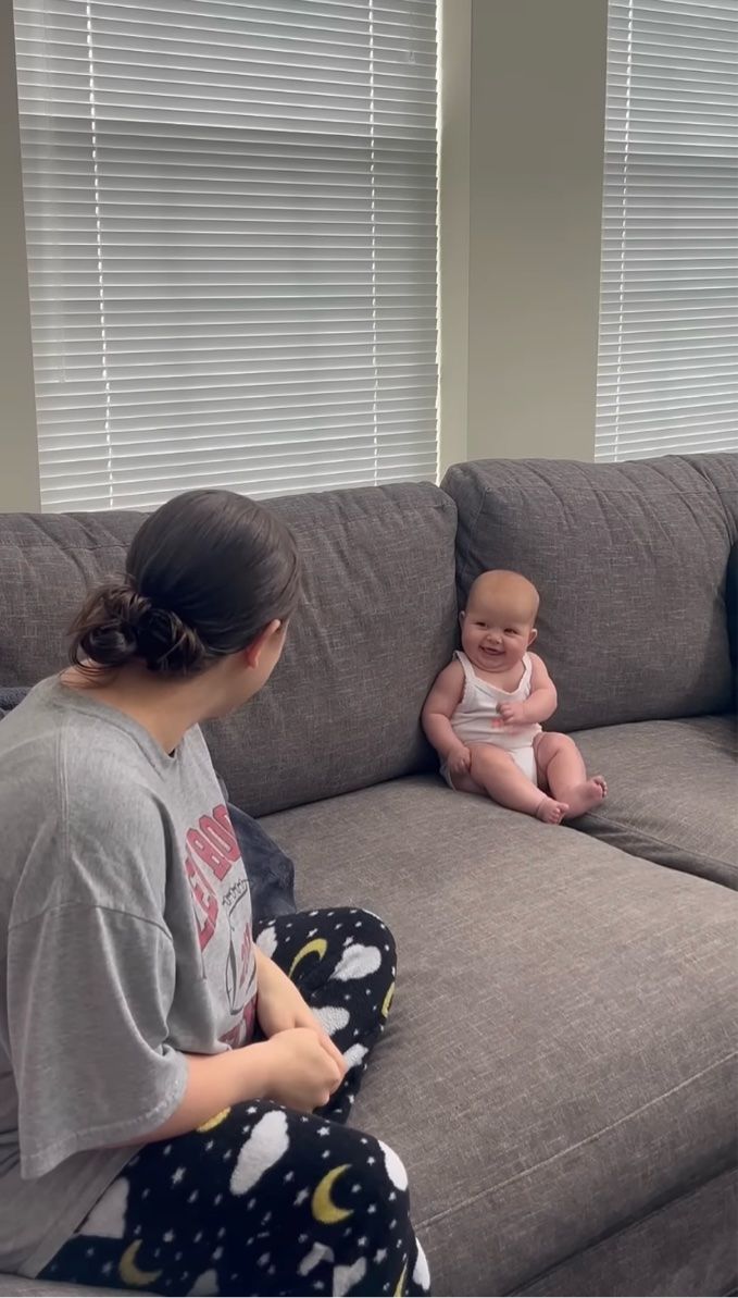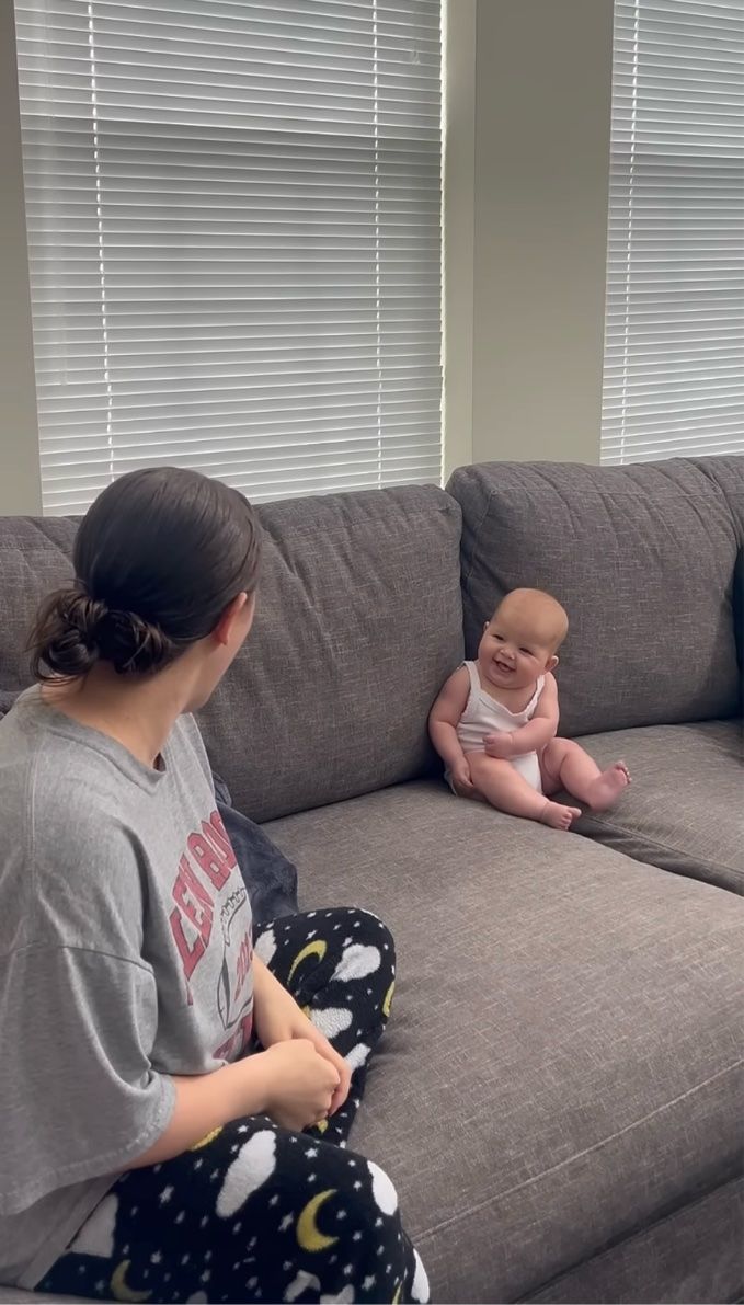 ママと目が合うと赤ちゃんからとびっきりかわいいリアクションが飛び出した!!【アメリカ・動画】