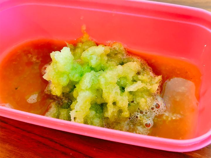すりおろしたきゅうりと刻んだ梅干しが絶妙にマッチしていて、さっぱりとしたソースに仕上がっています。