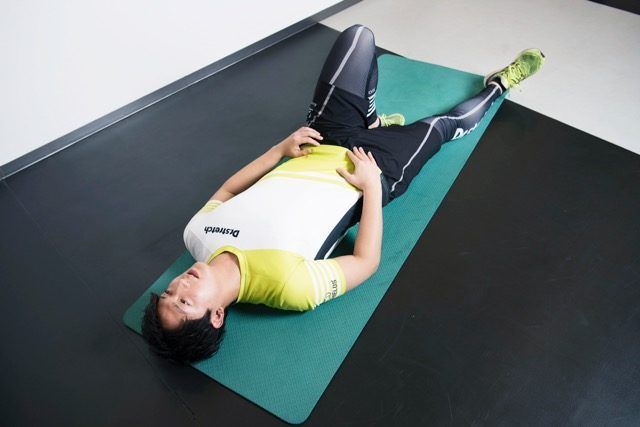 反対側も同様に行います。なお、期待する効果をきちんと得るためには「手でひざをしっかり押さえること」がポイントです。