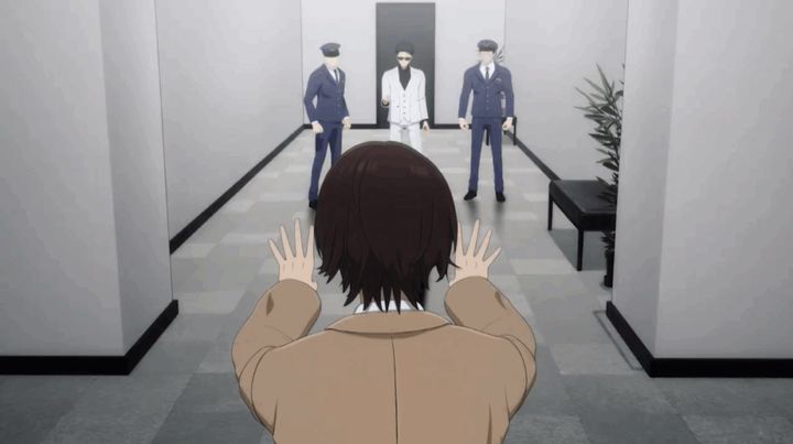 逃げようとした俺が立ち上がると、白スーツの男・矢継早 速人(CV.濱 健人)は「動くな!」と声を荒げた。