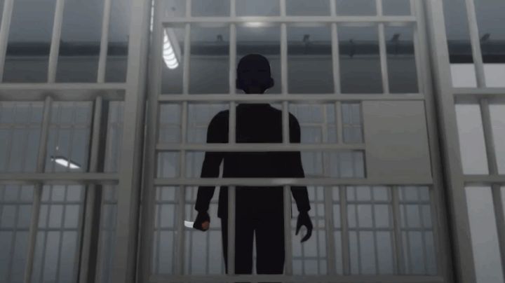 「ハハッそうか、鍵がかかってるのか。どうだ、おまえはここには入って来られねえ。俺が助かる方法、それは永遠に牢に入ってることだったんだ!ざまあみろ!」