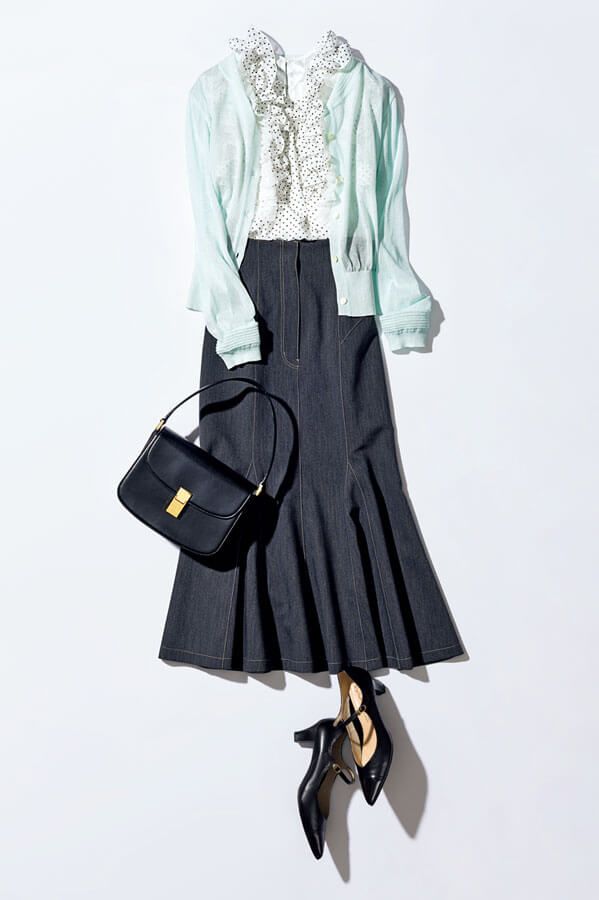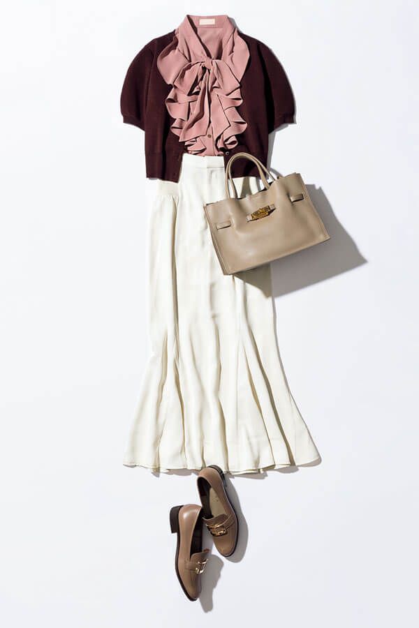 カーディガン¥23,100/アウディーレ ブラウス¥10,890/Swingle(Swingle有楽町マルイ店) スカート¥13,750/JILL by JILLSTUART バッグ¥47,300/銀座かねまつ(銀座かねまつ6丁目本店) 靴¥19,800/WASHINGTON(銀座ワシントン銀座本店)