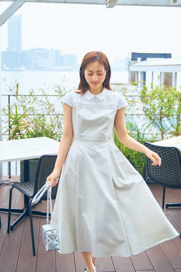 3. デートにもぴったり♡令嬢風ワンピに部分レースデザインで華やかなエッセンスを