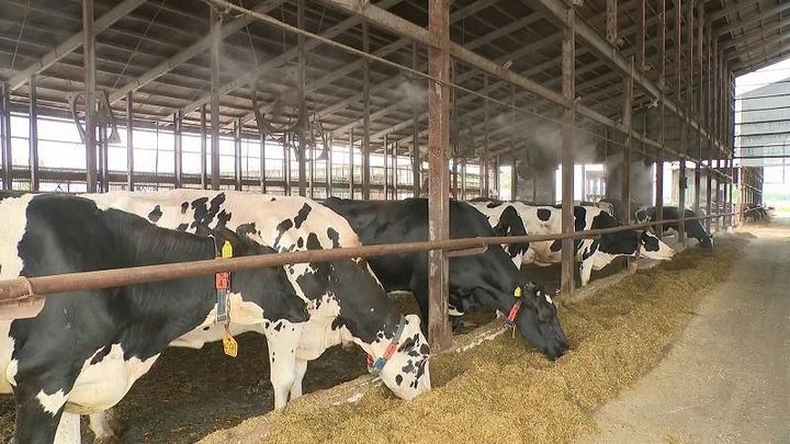 川口太一社長は「この牛舎で換気扇が30台。28℃を超えると牛が暑さにてきめんにダメージを受ける。免疫力もうまく働かなくなる。病気になる、乳量も落ちる、生産性も落ちる」と話します。