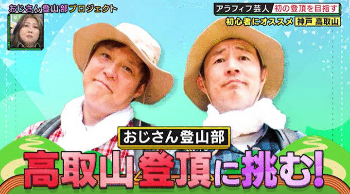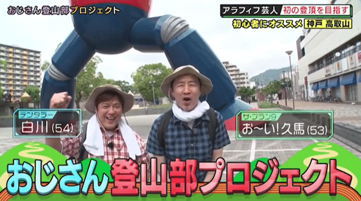 いつか富士山に登ってみたい、お〜い!久馬らおじさん芸人たちの真剣部活「おじさん登山部プロジェクト」は、ついに初めての登山にチャレンジ! 部員の久馬とテンダラー・白川、さらに初参戦の桂三度も加わり、神戸市にある標高328mの初心者向けの山「高取山」に登る。とある“大物芸人”からの無茶ぶりで登山を始めざるを得なくなったという三度。一体、彼に何が起こっているのか!?