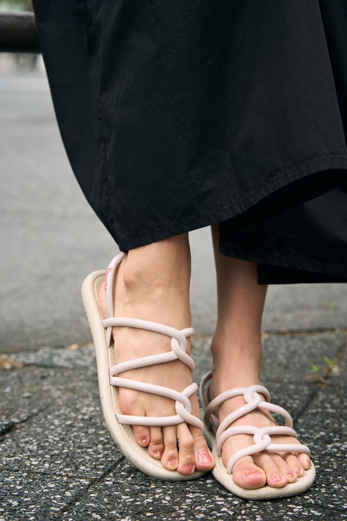 ほんのり甘いピンクがちょうどいい。大人に似合うきれいめサンダルコーデ