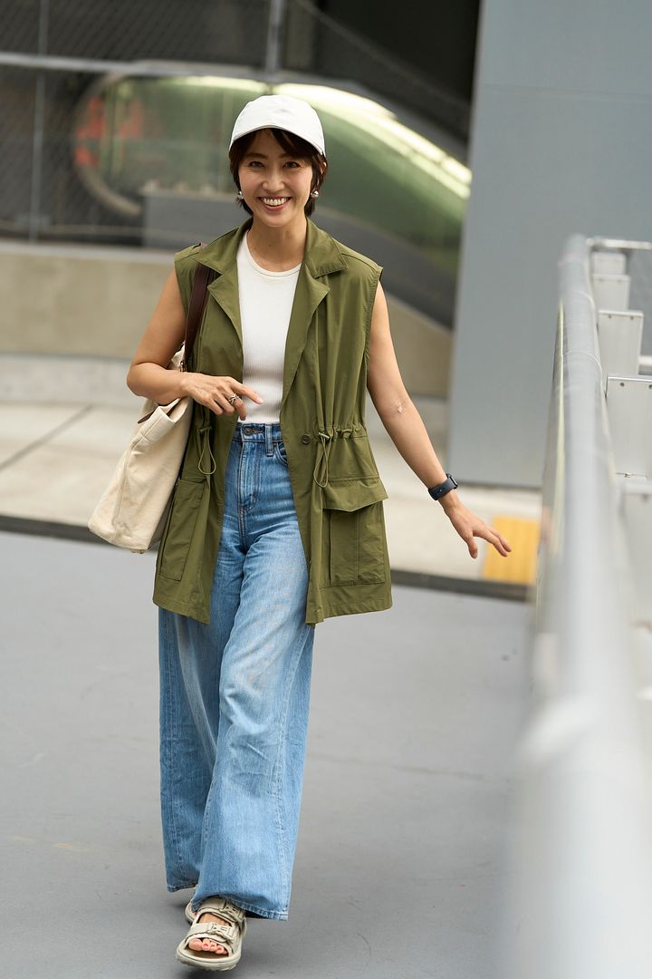 ジレ×ロング丈で大人バランスに。BBQもリゾートもOKな夏のアクティブスタイル