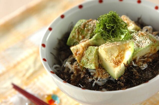 「森のバター」と言われるほど栄養価が高いアボカドと、カルシウムたっぷりのシラスを合わせた、栄養満点な一杯です。ごはんにのせるだけで完成する手軽さも魅力。ヘルシーなのもうれしいですね。
