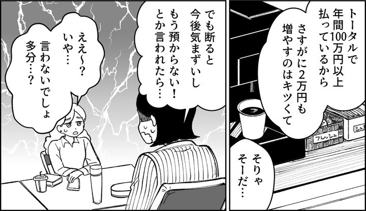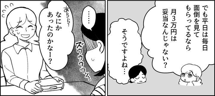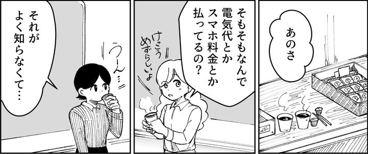 「断ったら気まずくなるかもしれないし、もう預からないなんて言われたら……」私が悩んでいる様子を見て、ミナミさんが苦笑しながら相談に乗ってくれます。「あのさ……そもそもなんで電気代とかスマホ料金とか払ってるの?」