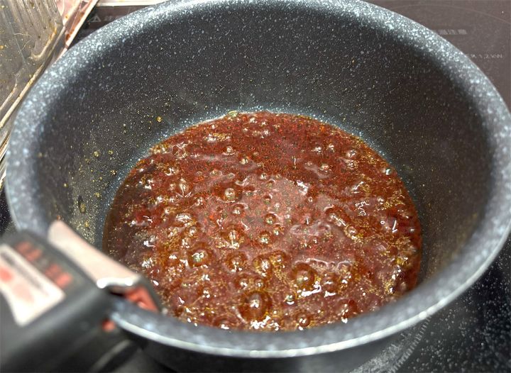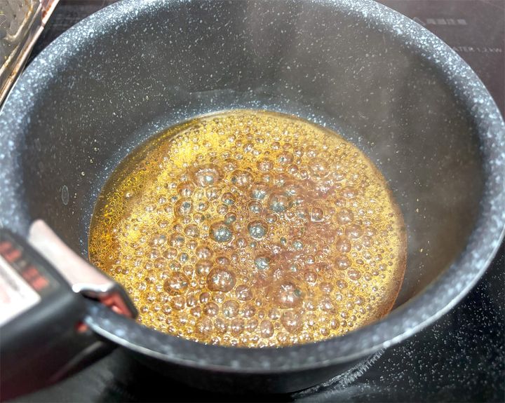 こうして完成したカラメルソースは下の画像のようにきれいな色合いになります。
