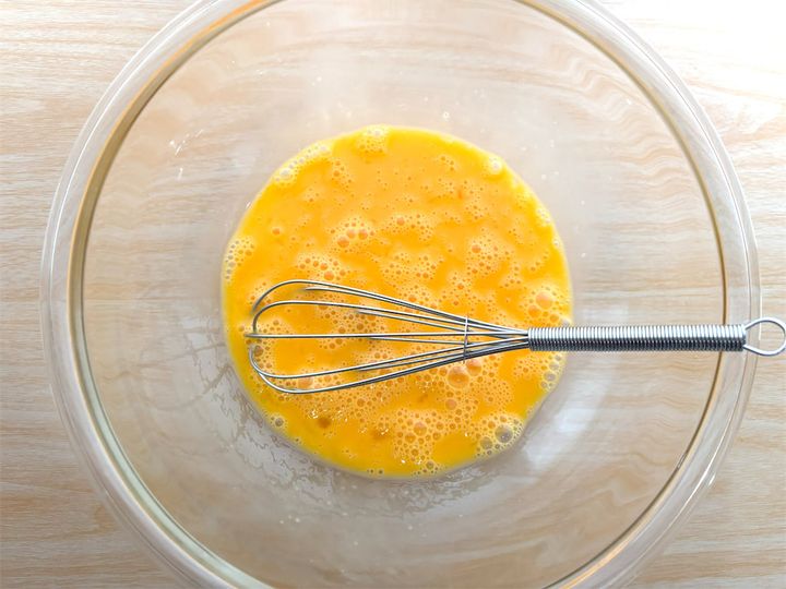 ボウルに卵を割り入れ、空気が入らないようによく混ぜておきます。