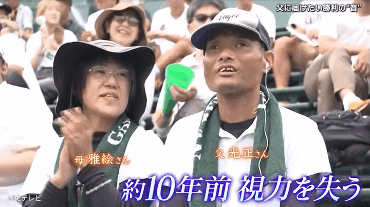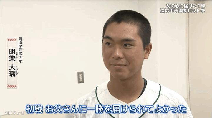 夏の甲子園(第107回全国高等学校野球選手権大会)7日目にあたる8月12日の2回戦第2試合。岡山学芸館(岡山)の3年生・明樂大瑶(あきらたいよう)選手は、視力を失った父親に勝利を届けようとガッツを見せた。第1打席は、ショートゴロエラーという結果だったが……!?