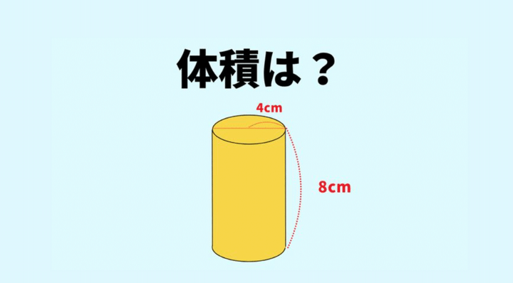 どうやって計算するか覚えてる?「底面の半径4cm、高さ8cmの円柱」→体積は?