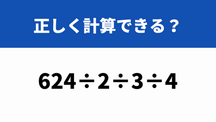 どうやって計算するか覚えてる?「624÷2÷3÷4」→正しく計算できる?