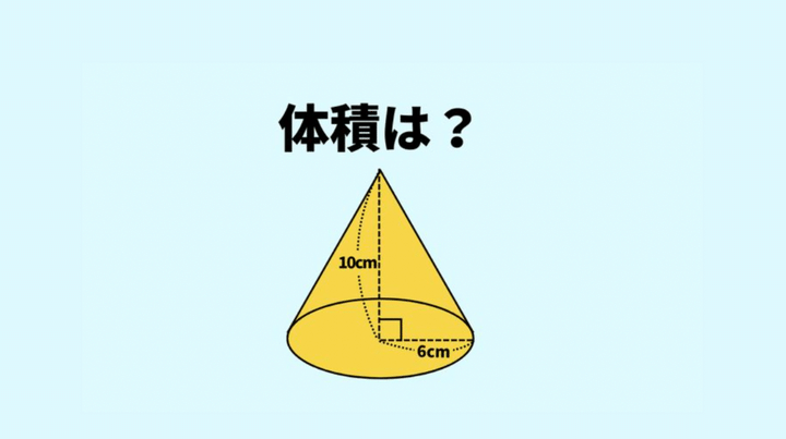どうやって計算するか覚えてる?「高さ10cm、底面の円の半径6cmの円錐」→体積は?