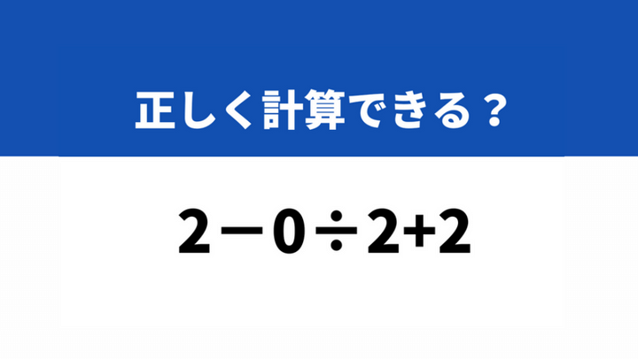 意外に間違える人が多いかも…?「2−0÷2+2」→正しく計算できる?