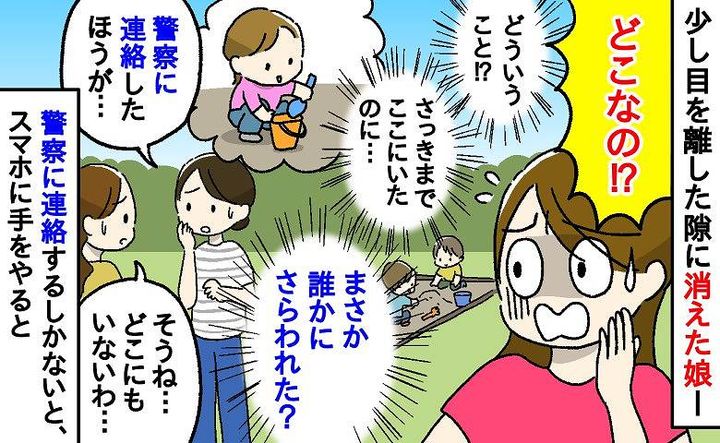 「もう警察に相談した方が…」ほんの少し目を離したら、公園でこつ然と姿を消した娘…顔面蒼白でスマホに手をやると