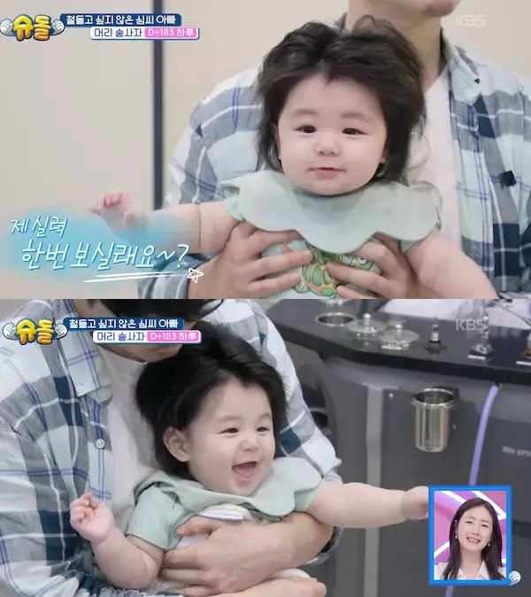 シム・ヒョンタクは「スーパー­マンポーズが得意」「足も手でつかむし筋肉がすごい」「ジャンプも得意なのでスポーツ選手に育てようかと思う」などと息子自慢を連発。身長・頭囲・体重すべてが上位クラスという“大きくてかわいい”状態に、父としての誇らしさを隠せなかった。