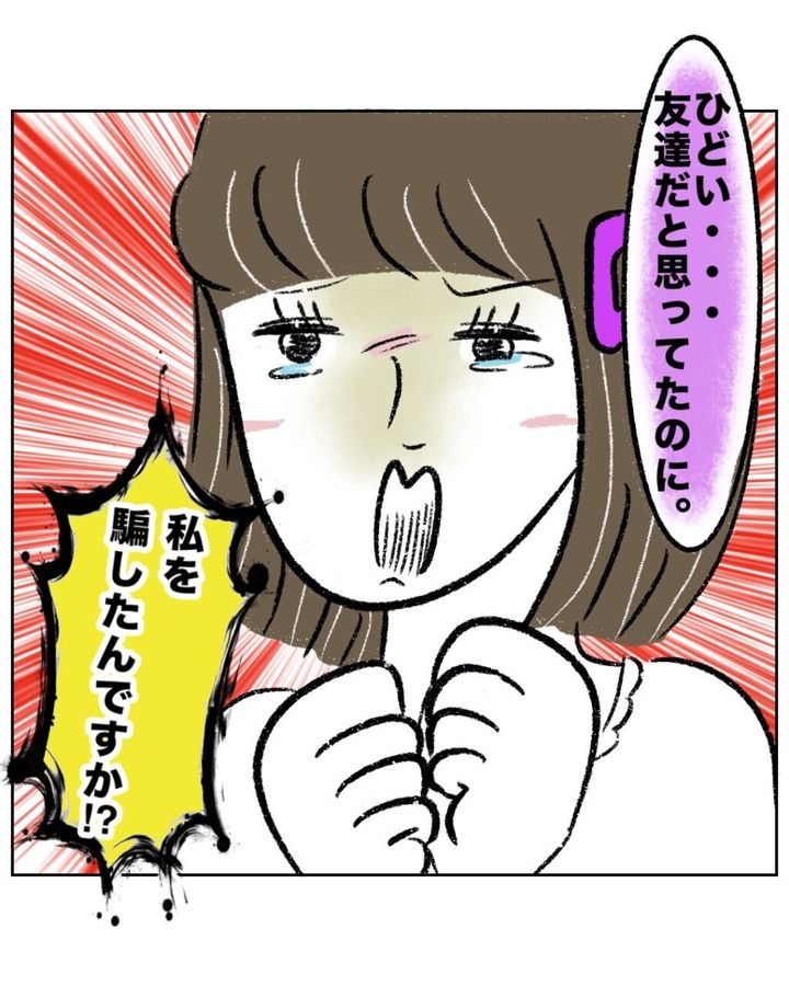 すると、「ひどい・・友達だと思ってたのに。私を騙したんですか!?」ゆかちゃんママがまるさんに訴えました。