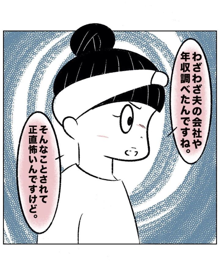 そして、「わざわざ夫の会社や年収調べたんですね。そんなことされて正直怖いんですけど」とまるさんが言うと、