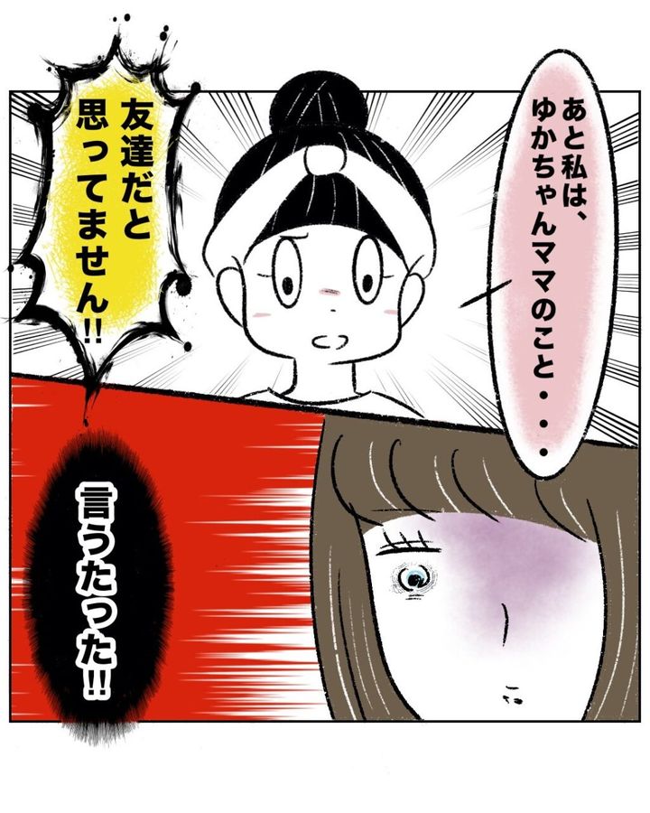 「あと私はゆかちゃんママのこと・・友達だと思ってません!!」と「言うたった!!」と思いながらハッキリ言うと、ゆかちゃんママの表情が変わりました。