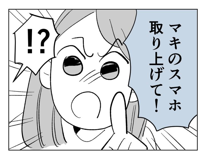 思いもよらぬ展開に、最初は固まってしまったミヅキさん。状況を整理すると、どうもサトミちゃんをいじめていた犯人が目の前のマキちゃんだと思えてしまうのです。しかもマキちゃんは反省もしていないようで、目の前でスマホをいじっています。そんなところにマサユキさんが帰宅。そしてマキちゃんのスマホを取り上げることに成功したのです。