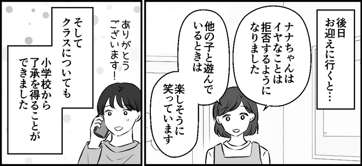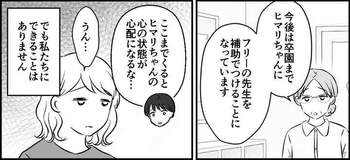 その後、ヒマリちゃんの暴言や暴力未遂もありましたが、ヒマリちゃんに補助の先生がつくことになり、事態は落ち着きます。