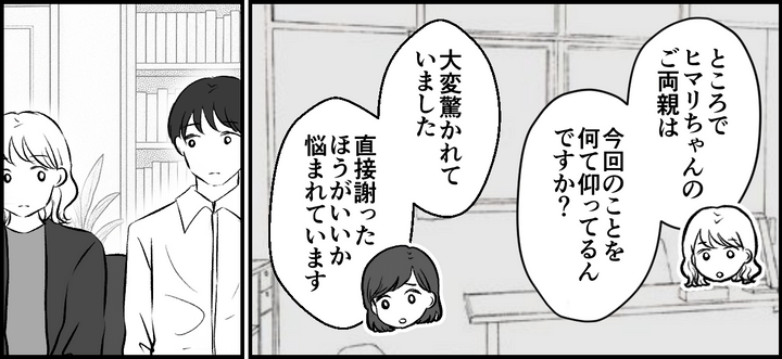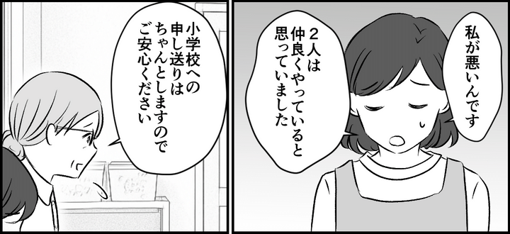 私たち夫婦は、幼稚園に話し合いの場をもうけてもらうことにしました。園長先生も同席しています。「このたびは誠に申し訳ございませんでした。ナナちゃんとヒマリちゃんとの関係をちゃんと把握できておりませんでした」と園長先生。ヒマリちゃんの保護者にいたっても、こちらに謝罪をしてくれるつもりでいるそうでした。しかし、私はもはや関わることすらしたくない……そのことを正直に園に伝えました。