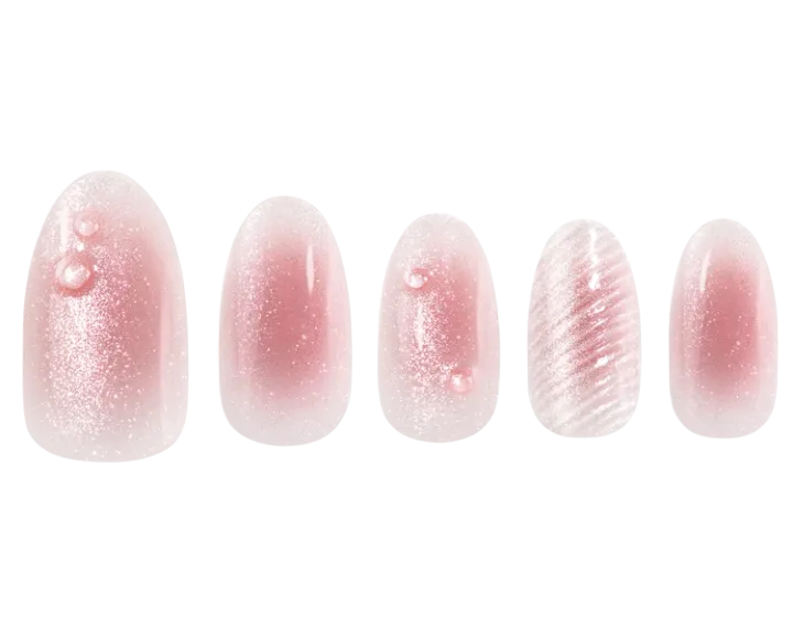 グラデ×マグのツヤネイル。ほんのり赤く染まったカラーに、水滴を落としたようなデザイン。