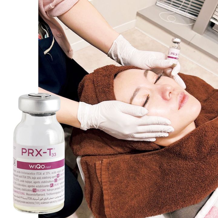 マッサージピール(PRX-T33)は皮膚の真皮層にまで働きかけ肌のハリや透明感を引き出すピーリング。従来のピーリングのような剥離が少なく直後から肌がツヤッと見えます。