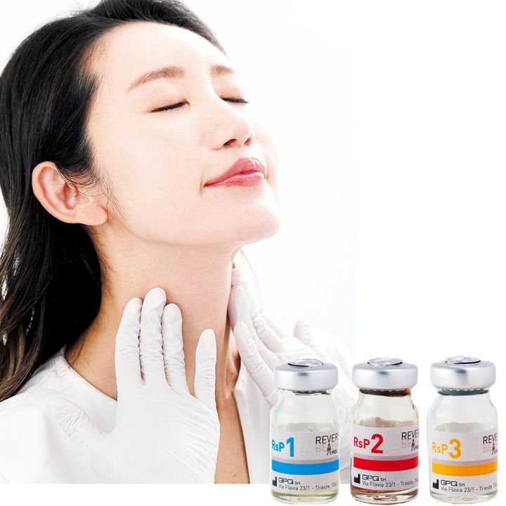 リバースピールは3種の薬剤を使用するピーリング。トリクロロ酢酸、高濃度乳酸、ヒドロキシ酸、フィチン酸などを順番に施術。驚くほどの効果で一気に肌が甦るのを実感。多忙な私には◎。