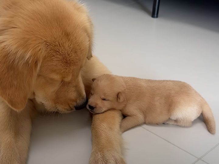 3. 腕枕してくれてるー! 初対面でも優しいゴールデンレトリバーお姉ちゃん