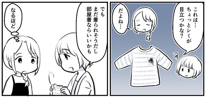もう着られないような洋服をそのままにせず、処分することに驚いた私。マドカちゃんはあっさりした様子で「結構ボロボロでしょ? これ、正直なところ自分の子にはちょっと着せたくないかなって」と、答えました。