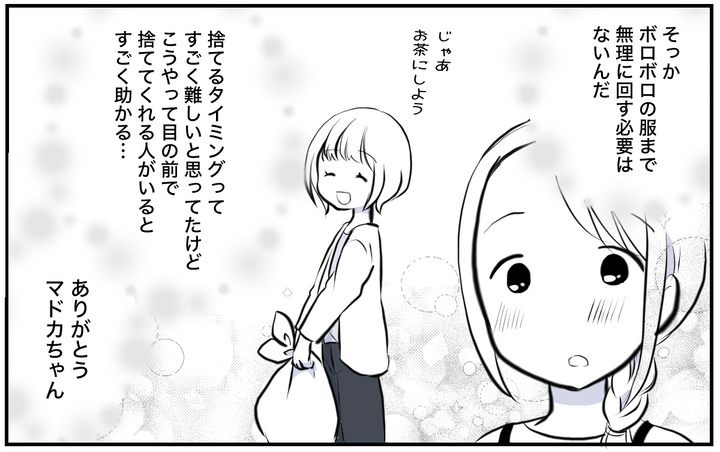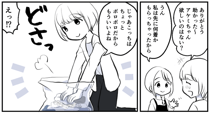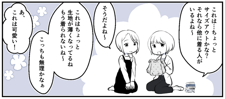 マドカちゃんはそう言うと、「着られない」と言いながら分けていた服をまとめはじめました。