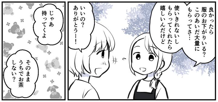 3. <お下がりのルール?>大量の洋服をママ友におすそ分け⇒潔い対応に「ビックリ…!」【まんが】