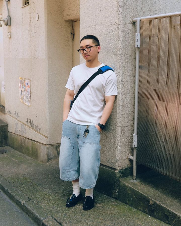 3. 【スナップ】ダブルニーの膝下ショーツにシンプル白Tという引き算の美学
