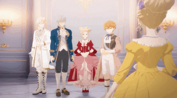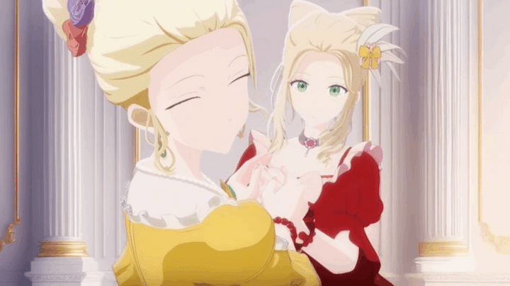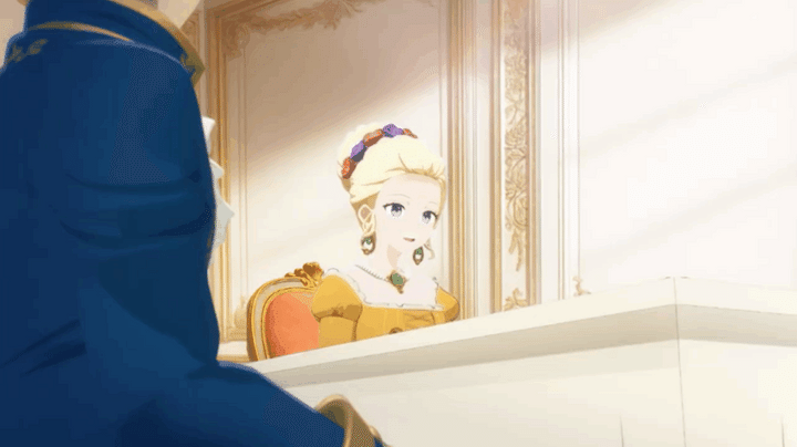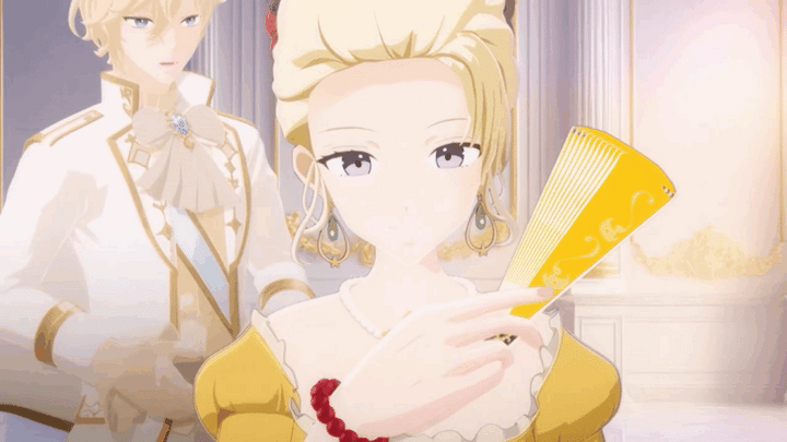 国王から贈られたブレスレットを身につけたデュ・バリー夫人に、王子たちがお祝いの品を贈呈していく。スタニスラス王子(CV:大塚剛央)は稀少な書籍を、シャルル王子(CV:土岐隼一)は色鮮やかな花束を差し出した。